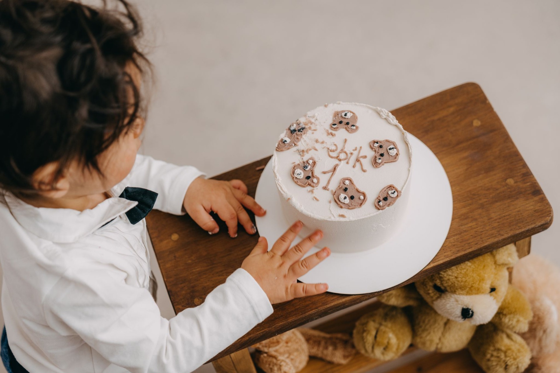 Velmi oblíbenou součástí focení je také narozeninový dort, se kterým děti mohou volně objevovat a hrát si.