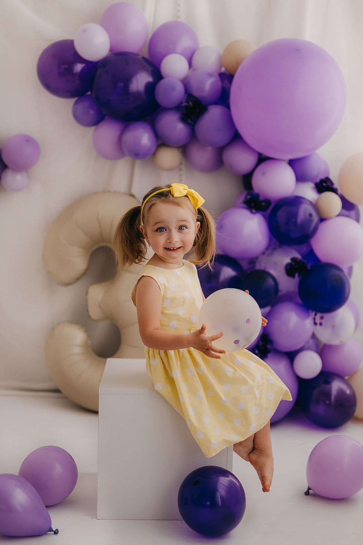 Oslavte narozeniny vašeho dítěte jedinečným dětským narozeninovým focením v ateliéru s balónkovou dekorací a možností dortíku